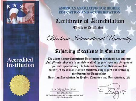 La acreditación es un proceso voluntario y no gubernamental que determina estándares de calidad educativa de la universidad a distancia y tradicional. No existen estándares únicos ni globales de acreditación. La acreditación no es equivalente al reconocimiento o la validez, es un criterio de calidad voluntario y no gubernamental. BIU está acreditada, es miembro o está reconocida por varias entidades internacionales y cumple los criterios de calidad establecidos por cada una de ellas en diversos países. Ninguna de estas entidades está reconocida por CHEA (Council of Higher Education Accreditation), que es el sistema de acreditación principal de las universidades tradicionales en los EE.UU. Leer mas...