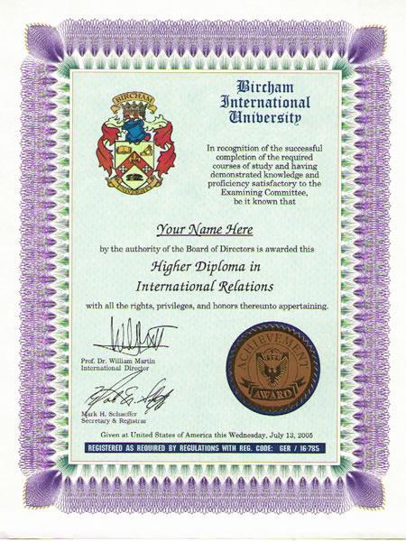 Ejemplo de diploma a distancia - Higher Diploma